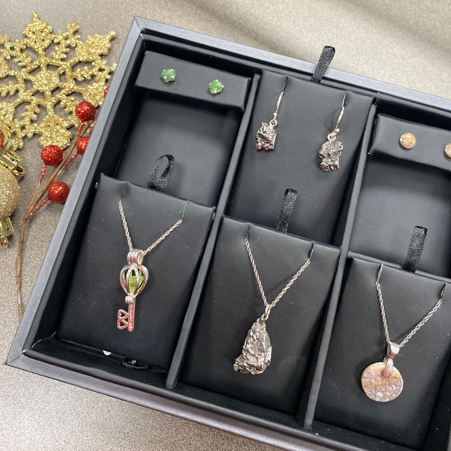 Choose from stunning one-of-a-kind materials like dinosaur bone and Gibeon meteorite. -