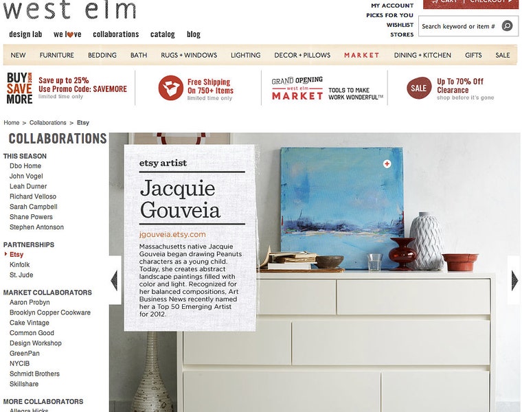 My painting "Blue Morning" featured on West Elm's site and catalog Spring 2013 -