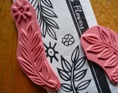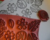 Leaves & Flowers - Unmounted Rubber Stamp for: polymer clay, scrapbooking, card making, PVC, texture sheet, floral pattern
