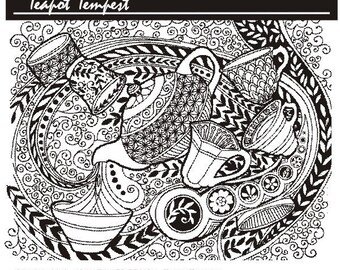 Rubber Stamp, Unmounted for: polymer clay, scrapbooking, card making, PVC, texture sheet, teapot, tea cup