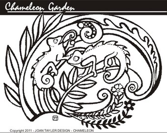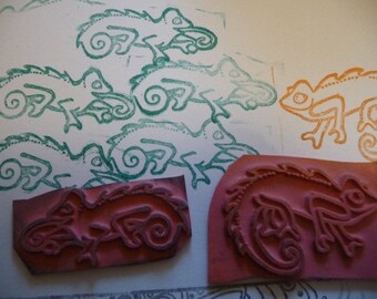 Chameleon Pair - Unmounted Rubber Stamp for: polymer clay, scrapbooking, card making, PVC, texture sheet, floral pattern