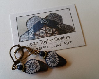 Earrings - Indigo Kiku - single with leaf - polymer clay
