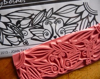 Birdie Border - Unmounted Rubber Stamp for: polymer clay, scrapbooking, card making, PVC, texture sheet, floral pattern