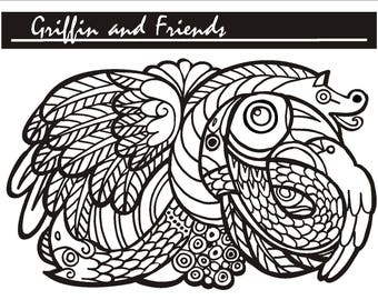 Rubber Stamp - Unmounted - Griffin and Friends - 5.25 inches (13.5 cm) x 3.5 inches (6.5 cm)