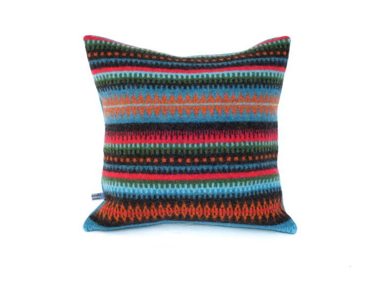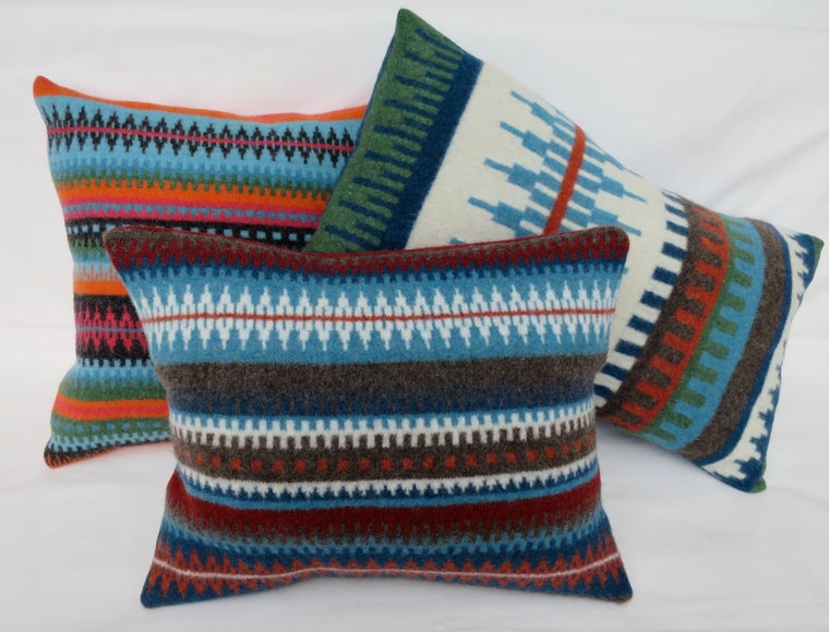 With striking colour combinations, judeworks textiles are lovingly made from wool and other natural materials. Feeling as good as they look, her collection of cushions are knitted, softly felted and finished to have a luxuriously soft handle.