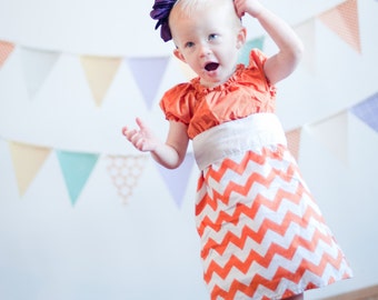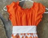 Orange and White Chevron Peasant Dress for Fall, Game Day, or Thanksgiving