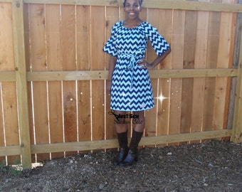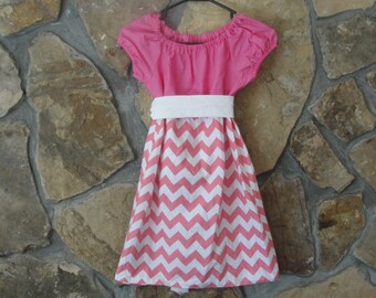Pink and White Chevron Ladies Peasant Dress- Perfect for Summer and Spring Sizes XL, XXL, XXXL