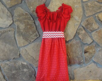 Sweet and Elegant Red and White Chevron Christmas Peasant Dress with Dashing Black Sash