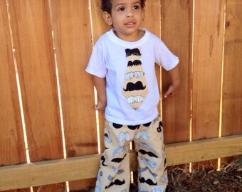 Boys' Mustache 2 Piece Set....Applique Shirt and Pants...6, 12, 18 months, 2T, 3T, 4T, 5