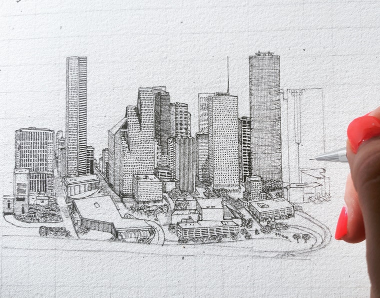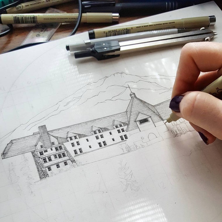 About 8 years ago I entered my first art contest that was hosted by a local stationery shop, in which I entered in an illustration of a beloved restaurant in my hometown. It was the first time I had ever drawn a building and I fell in love with the process almost immediately. I went on to win the contest, and I've been drawing buildings ever since!
