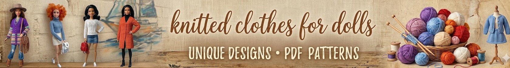 Mijn naam is Oksana. Ik ontwerp gedetailleerde breipatronen voor modepoppen (11,5 inch / 30 cm).