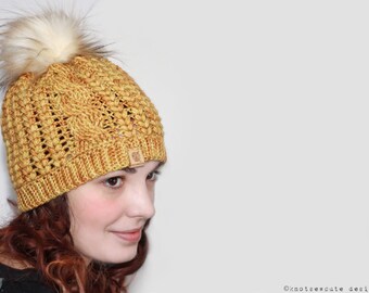 CROCHET PATTERN - Classic Cables Ladies Tam - Instant Download (PDF)