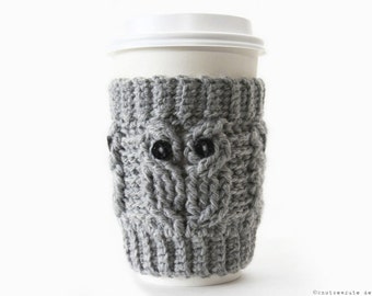 CROCHET PATTERN - Owl Love Coffee Cozy - Instant Download (PDF)