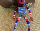 Junk Fairies can be customized! I can incorporate scrabble tiles or lotto numbers to reflect dates or initials. I have a huge collection of postage stamps that can reflect a person's hobbies or interests. I also have quite a few vintage maps if you have a special city or state you want represented. Just let me know your wishes and together we can come up with something truly unique and special.