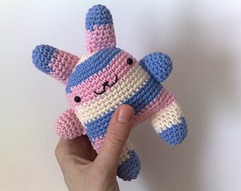 super kawaii crochet bunny pink blue cream stripes pastel sweet