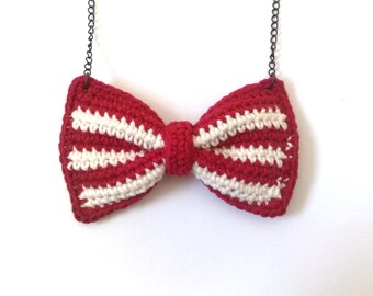 crochet bow necklace red white stripes playful charming girly kawaii