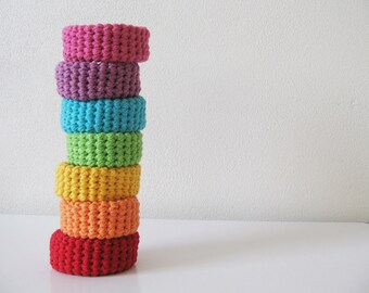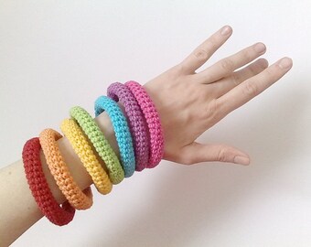 7chunky crochet bracelets - rainbow neon colorful