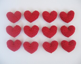 12 Crocheted Mini Hearts - 3D - Red