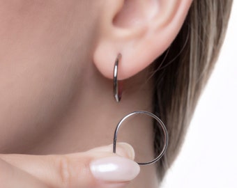18K WHITE GOLD Hoops, timeless jewelry classic, loop earrings circle, everyday jewelry gold, anniversary present, open hoop earrings black