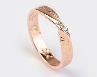 Words Infinity ring OOAK, 18K Mobius Rose GOLD ring, promise ring personalized, engagement ring diamond jewelry, eternity ring wedding band