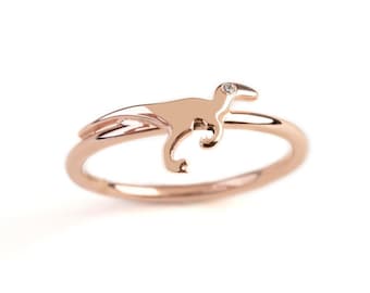 Velociraptor ring Pink Gold, diamond jewelry precious gemstone, dinosaur ring Jurassic animal, T Rex jewelry cute, raptor ring rose gold
