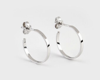 White GOLD Hoops 14K, circle earrings, flat hoop earrings open, modern loops, bridesmaid jewelry gift for her, timeless jewelry Gold solid