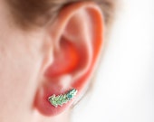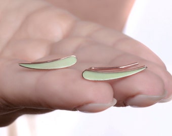 Elf ROSE GOLD enamel earrings, 14K ear climbers green, fairy jewelry dainty, one of a kind handmade earrings, unique jewelry gift for lover