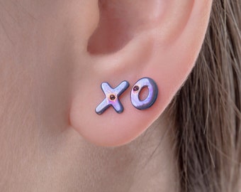 XOXO earrings Titanium, hugs and kisses studs, letter earrings cute, lover gift idea for woman, titanium studs love, anniversary jewelry