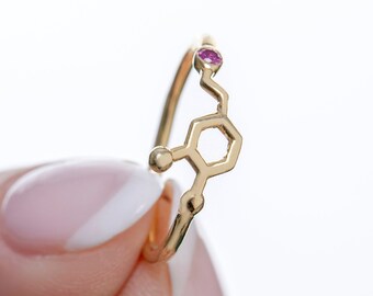 Dopamine YELLOW GOLD ring, ruby jewelry, chemistry symbol design, birthstone ring gold, science teacher gift, biology jewelry molecule