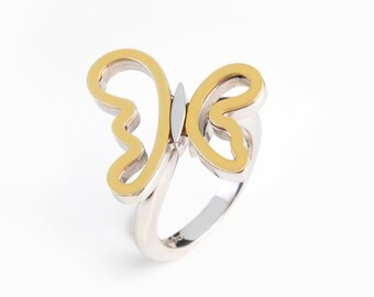 Yellow Gold Butterfly ring, fairytale ring silver, insect jewelry butterfly, nature lover gift for her, cocktail ring romantic, boho ring
