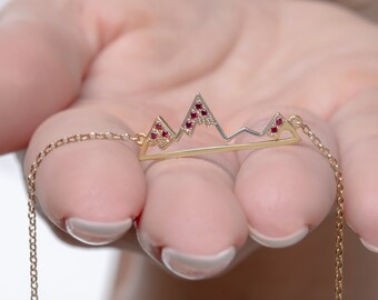 Mountain Ruby bracelet, Yellow GOLD Mountain jewelry, red gemstone bracelet, precious stone jewelry classy, nature lover bracelet minimalist