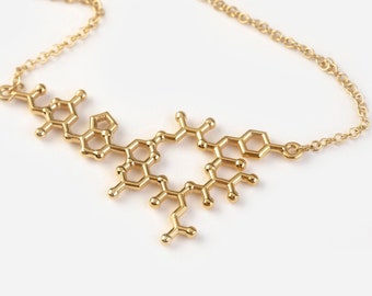 Oxytocin necklace Yellow Gold, molecule jewelry dainty, science gift doctor jewelry, love necklace molecule, solid gold pendant chemistry