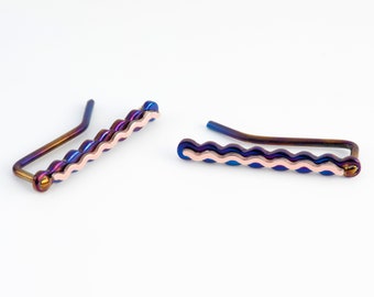 Wavy ear climbers ROSE GOLD, titanium earrings modern, mixed metal gift for girlfriend, colorful ear jackets, bridesmaid earrings minimalist