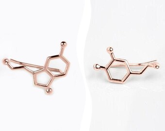 Mix match earrings GOLD ROSE, Serotonin ear cuffs Dopamine, molecular jewelry science, chemistry ear crawlers golden, hormone earrings cool