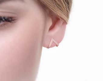Chevron earrings 14K Rose GOLD, V posts dainty, unisex earrings modern, triangular earrings geometric, men studs women, symbol jewelry gift