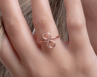 ROSE Solid GOLD Infinity ring, eternity jewelry minimalist, promise ring gold classy, wire wrapped handmade ring, dainty girlfriend gift