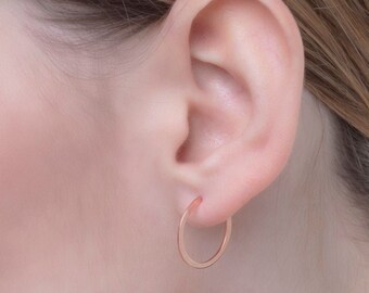 ROSE GOLD Hoops, open hoop earrings, timeless jewelry 18K, elegant gift for wife, solid Gold circle earrings, minimalist jewelry wire hoops