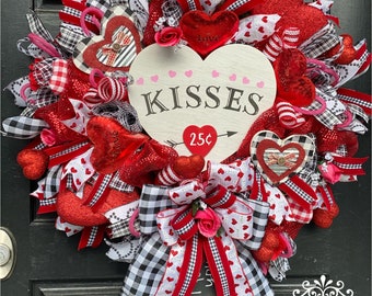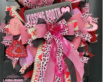 Valentines wreath, Kissing booth wreath, Valentines decor, Front door wreath, Holiday wreath