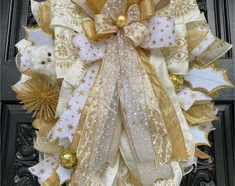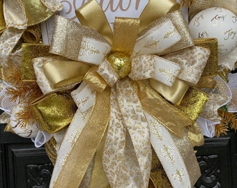 Christmas wreath, Holiday wreath, gold and white wreath