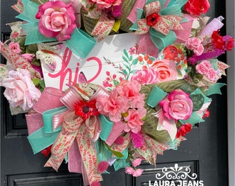 Summer Wreath, spring wreath, front door wreath, Hi wreath, Mother’s Day wreath