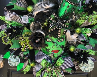 Halloween Frankenstein Bride themed wreath , Halloween wreath