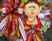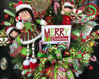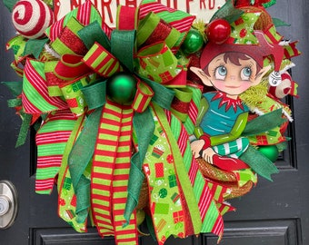 Elf wreath, Christmas wreath, Holiday wreath, Front door wreath,