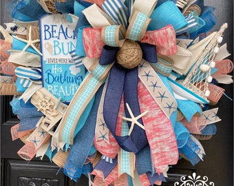 Beach wreath, Summer wreath, Mother’s Day wreath, Front door wreath
