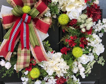 Valentine wreath, Holiday wreath, red and white valentine wreath, front door wreath, Door decor
