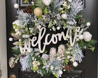 Welcome wreath, Holiday wreath, grapevine wreath, Christmas wreath , Best door decor, winter wonderland wreath.