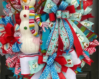 Snowman wreath, Christmas wreath, Holiday wreath, Front door wreath, laura Jeans wreath room, winter wreath.