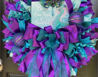 Peacock Wreath, Be your own kinda Beautiful wreath, purple and teal wreath, large wreath