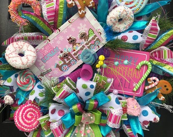 Whimsical Christmas wreath, Christmas wreath , Holiday wreath, Holiday door decor, front door decor, Front door Holiday wreath