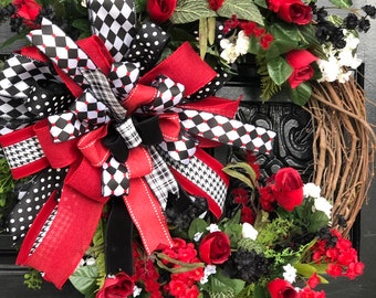 Valentine Wreath, red whit and black wreath, Holiday wreath, front door wreath