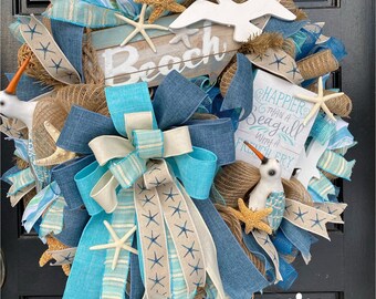Beach wreath, Seagull wreath, summer wreath, Spring wreath, Summer door decor